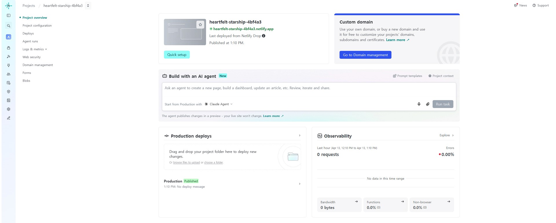Click the red [Delete site] button, type in the site name one more time to confirm, and it will be permanently deleted from the internet! (๐ก Note: If you deployed simply by dragging and dropping without signing up/logging in, rest assured that it will automatically self-destruct (delete) after a certain period of time.)