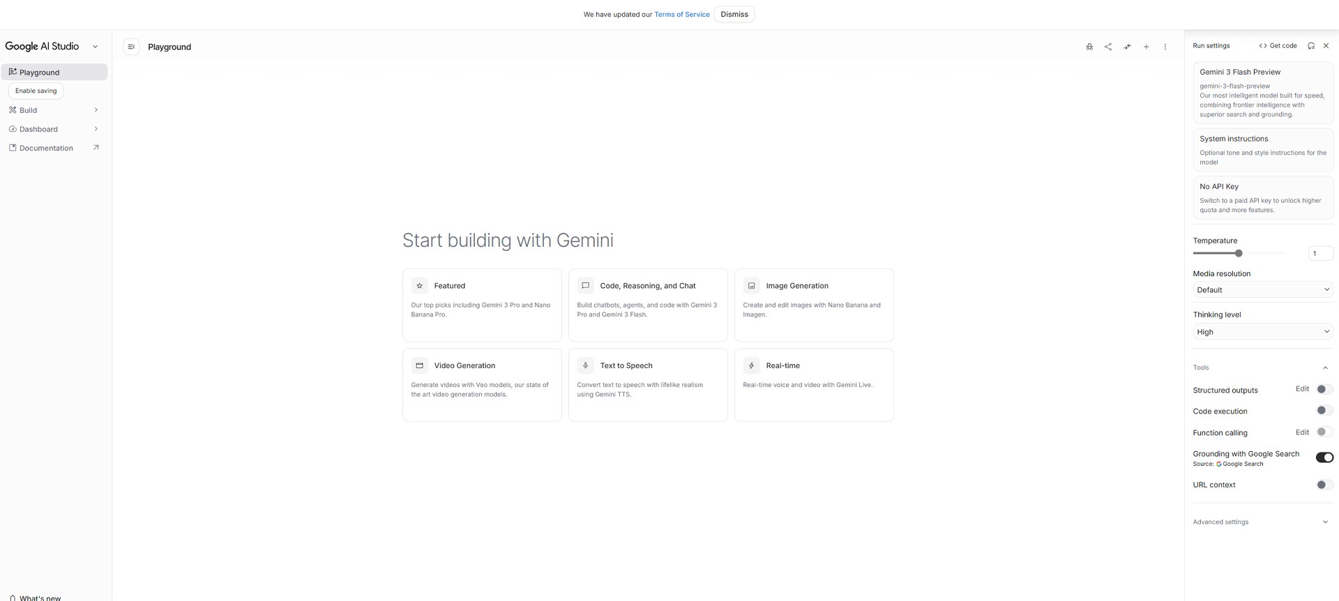 Make sure 'Playground' is selected in the left menu.