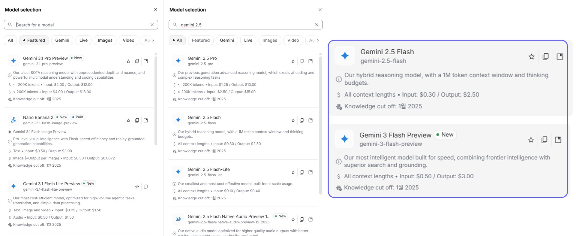 At the very top of the panel, there is a rectangular box displaying the name of the model currently in use (e.g., Gemini 3 Flash Preview). Click this box and select the model you want. (We recommend the Gemini 2.5 Flash or Gemini 3 Flash series, which are fast and great for free use.)