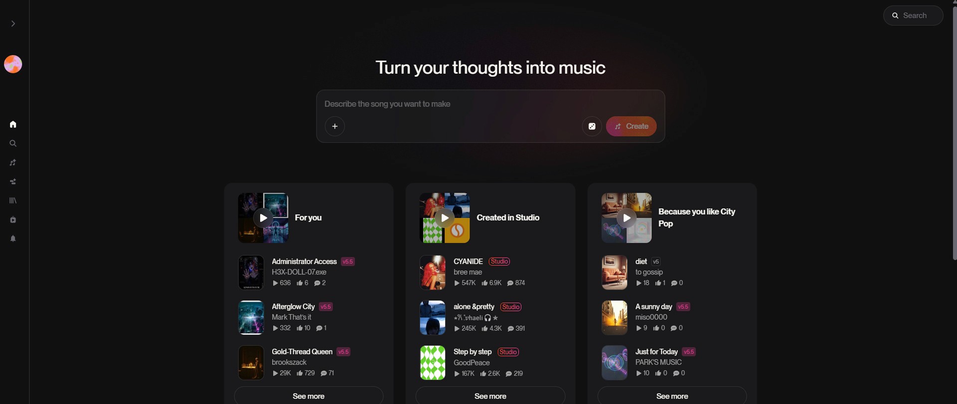 Click the Music Note Icon (Create) on the left menu.