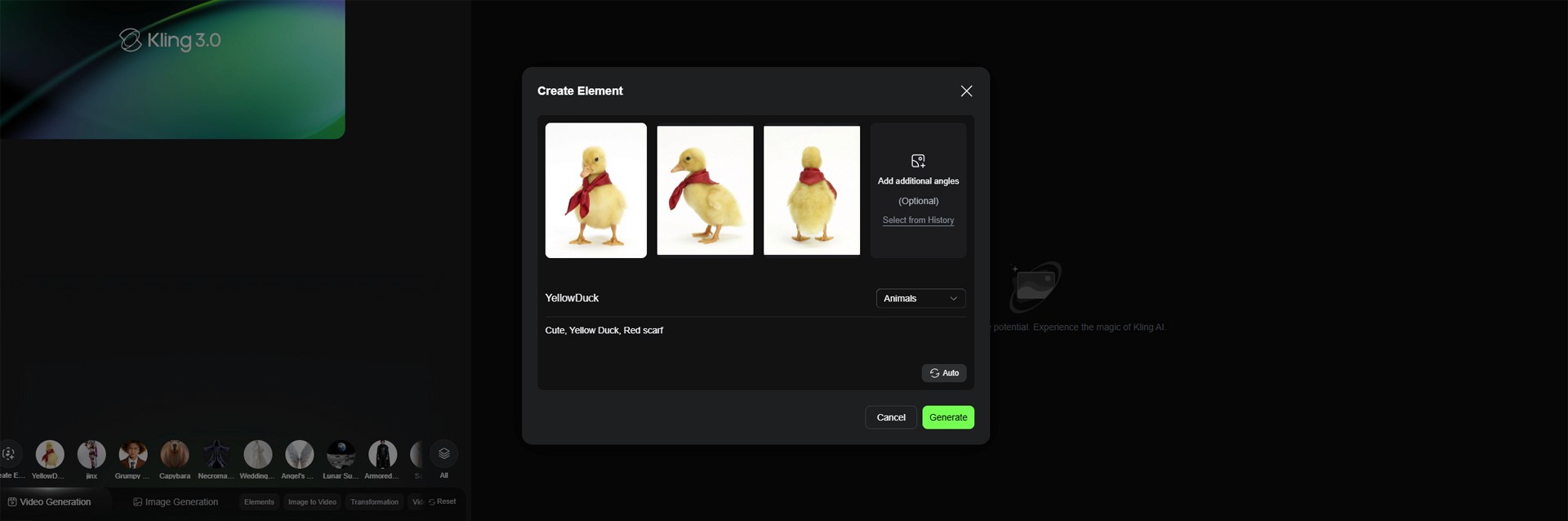 [Video Generation]prompt (text) box on the main Omni screen.There are two ways to summon the duck you just created into the prompt: you can either type