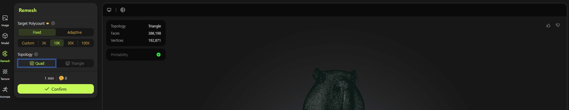 💡 a2set Pro Tip: To be completely honest, the AI's automatic retopology doesn't guarantee a 100% flawless topology like one meticulously crafted by a professional 3D artist. However, when you need to quickly block out a rough animation sequence or create a 3D storyboard, this tool in Meshy AI offers an overwhelming reduction in time, massively boosting your workflow efficiency!