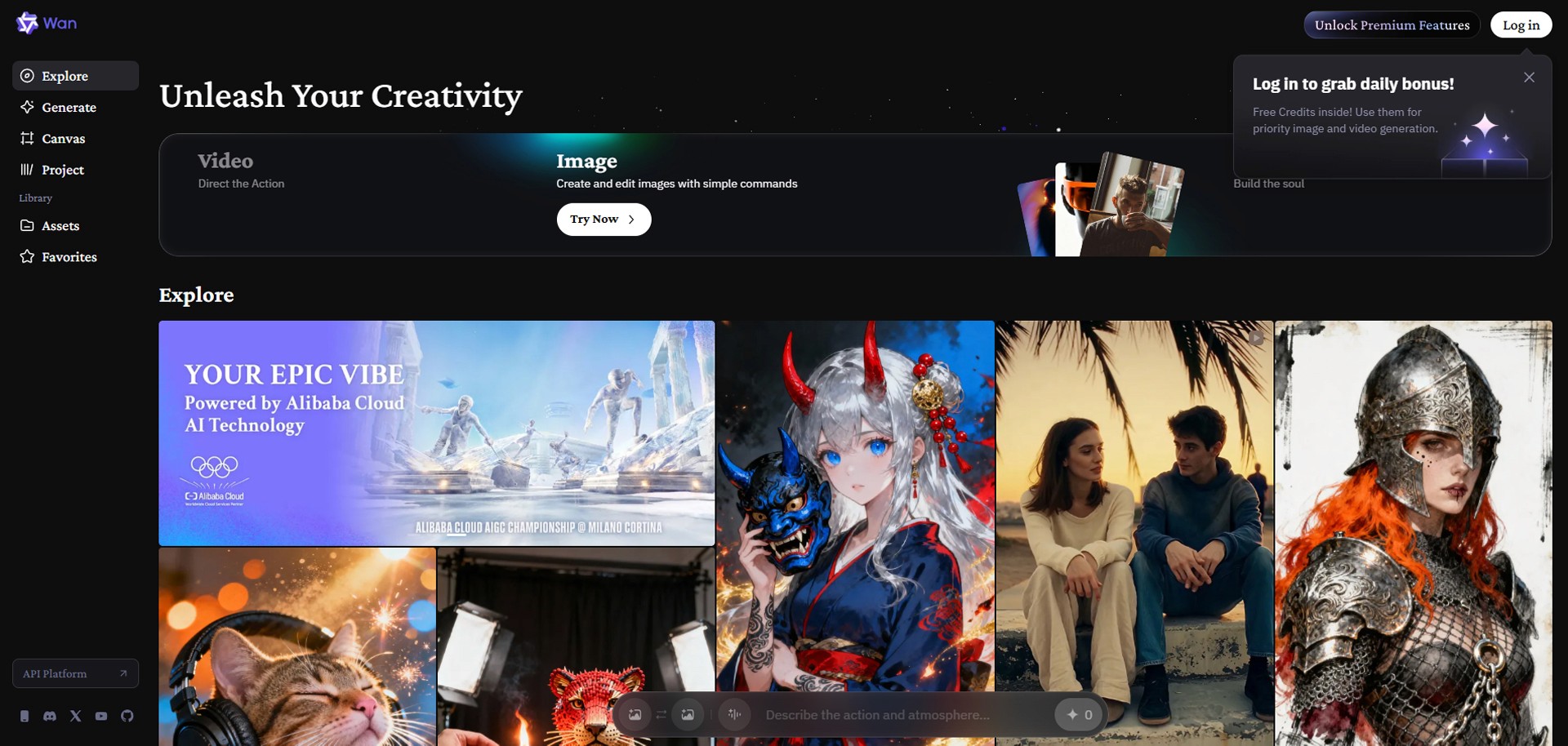 Open your web browser, go to wan.video (Wan's official AI creative platform), and create a free account.
