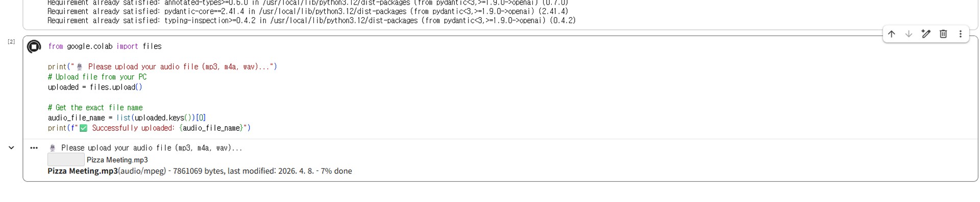 Now it's time to bring your meeting or lecture recording file (.mp3, .m4a, etc.) from your smartphone to Colab.