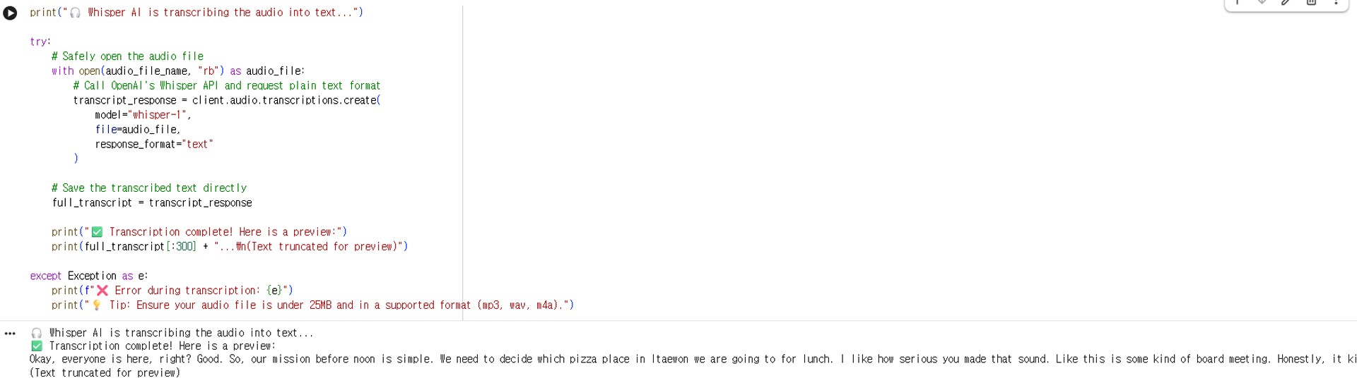 Step 3: Transcribe Audio to Text with Whisper AI (STT)