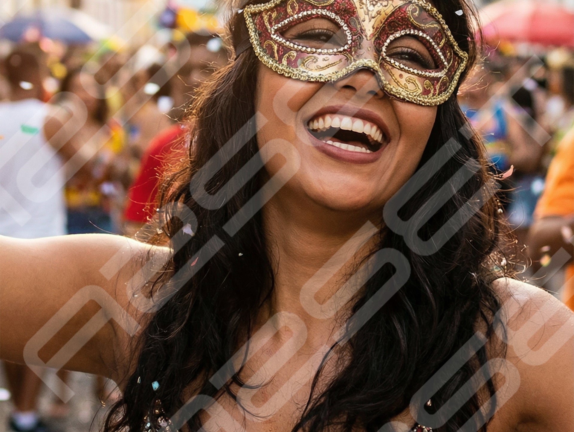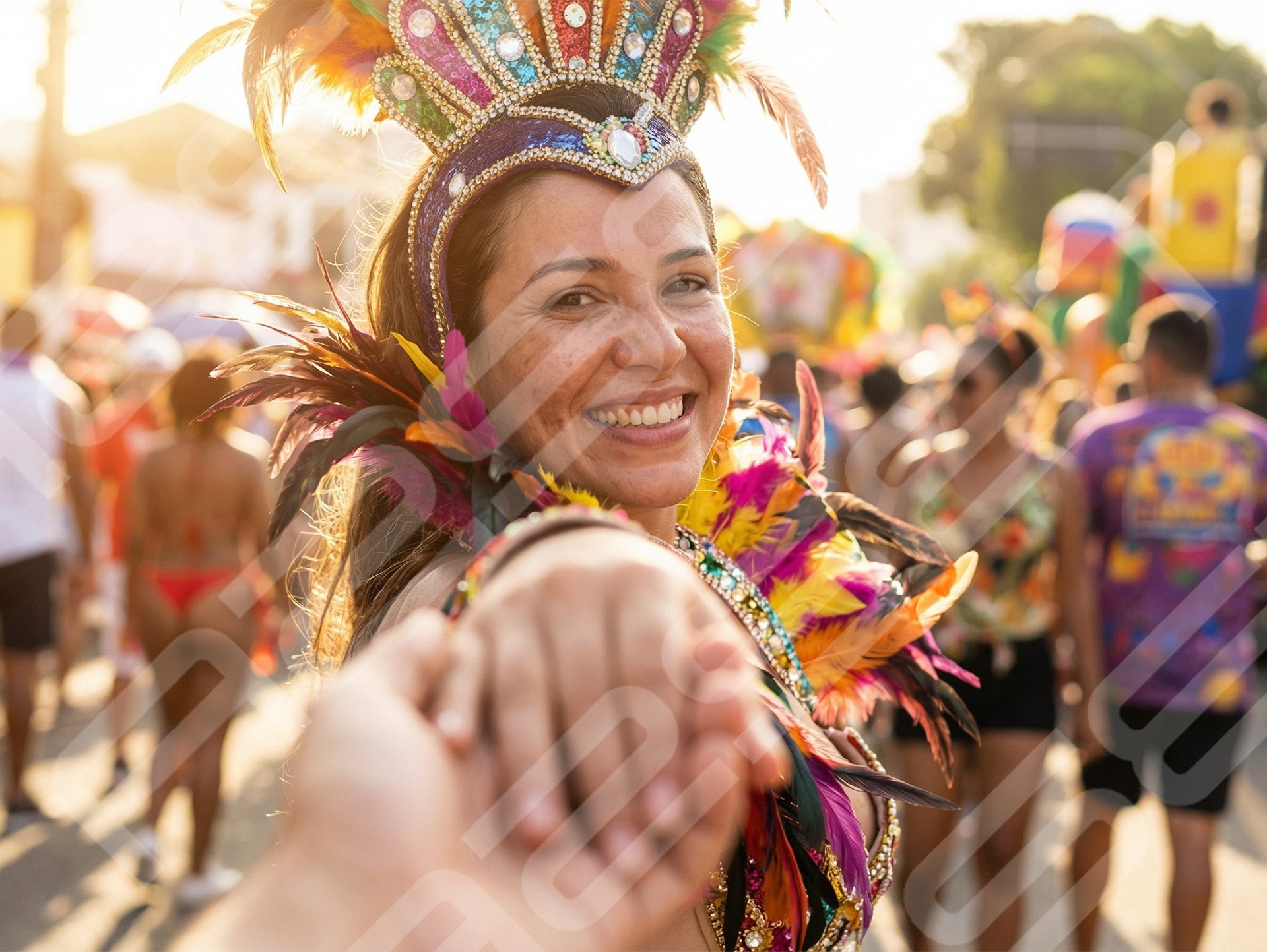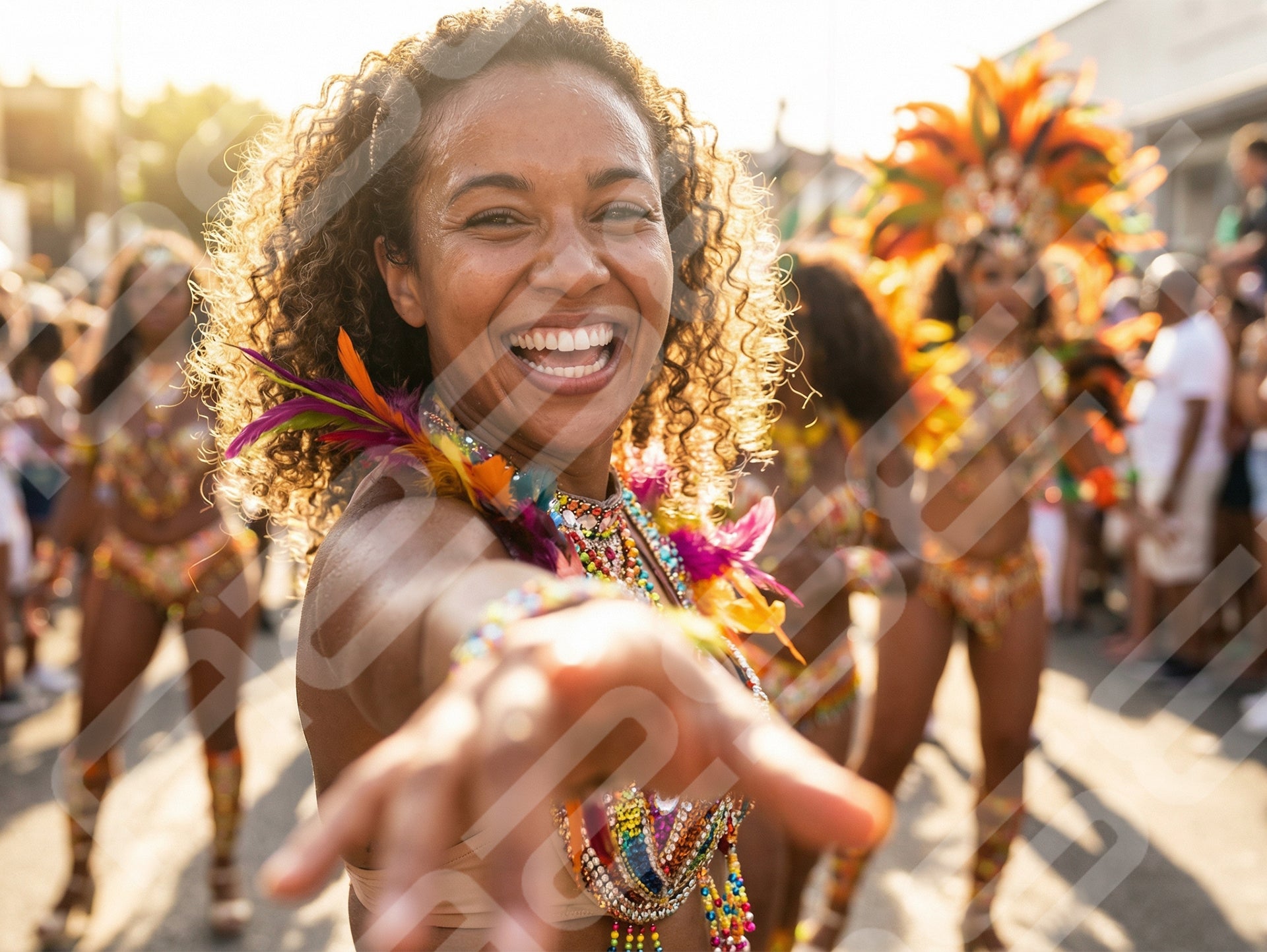 Joyful Carnival Woman Reaching Toward Camera