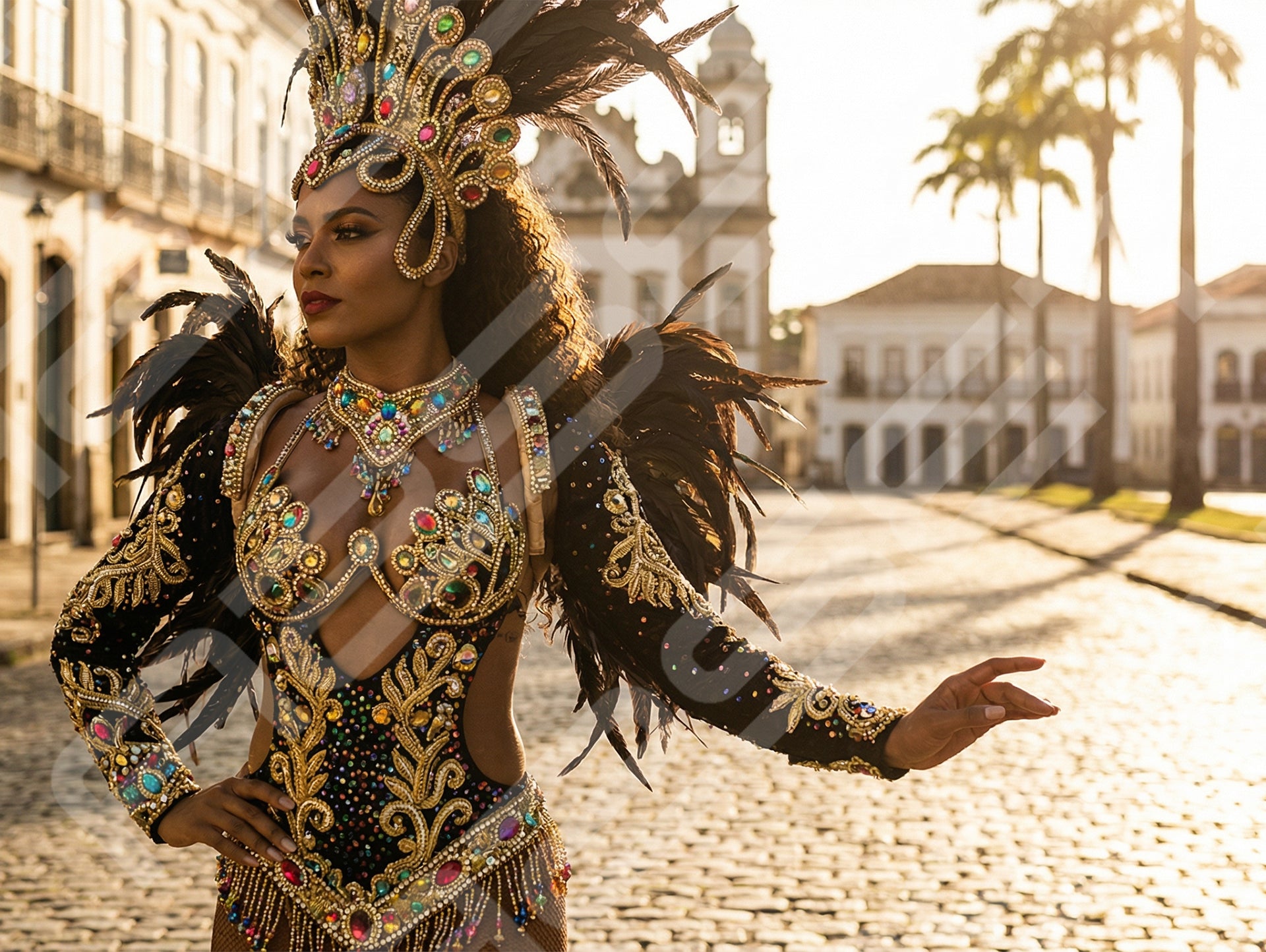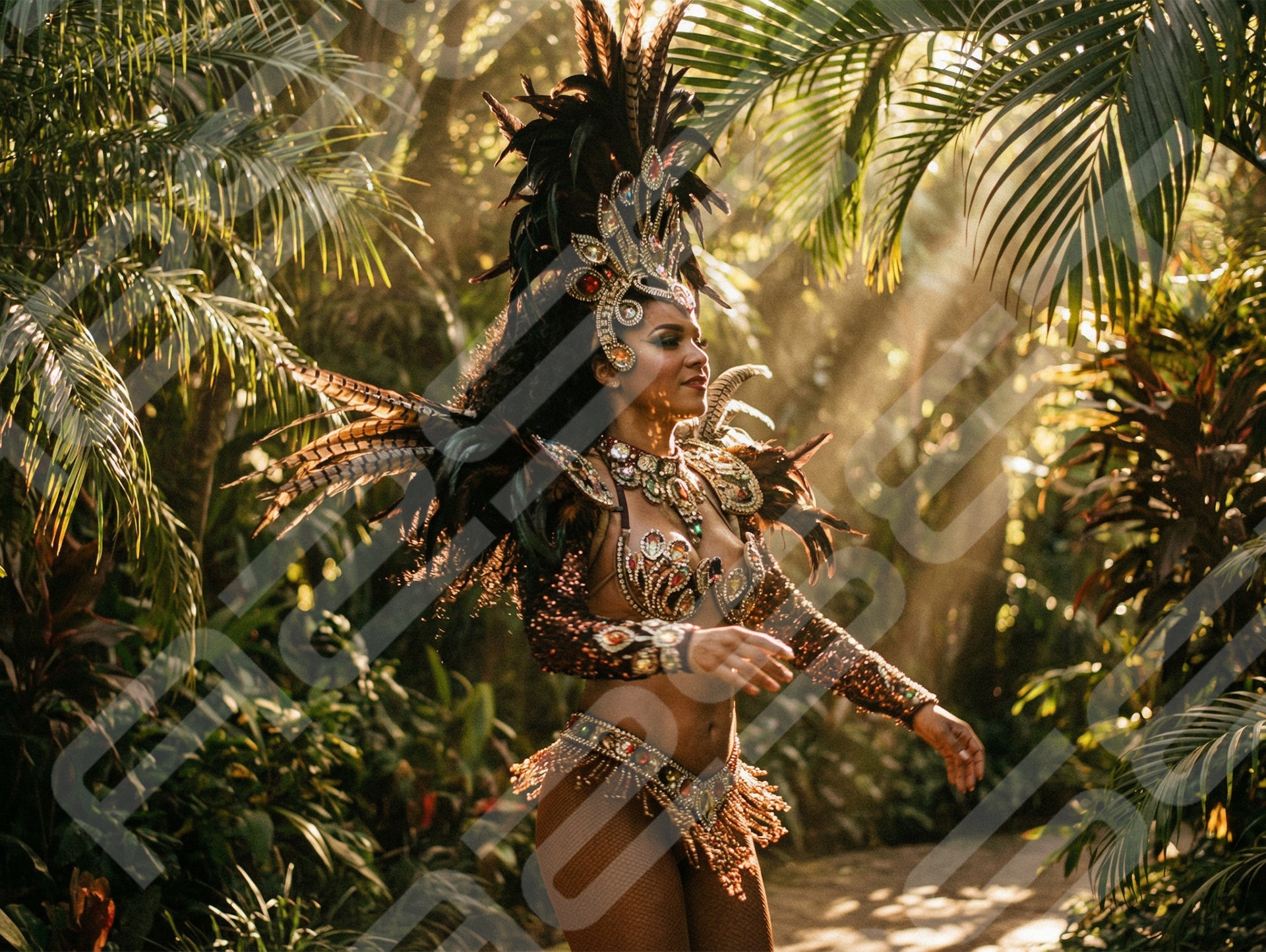 Tropical Carnival Dancer in Jungle Light