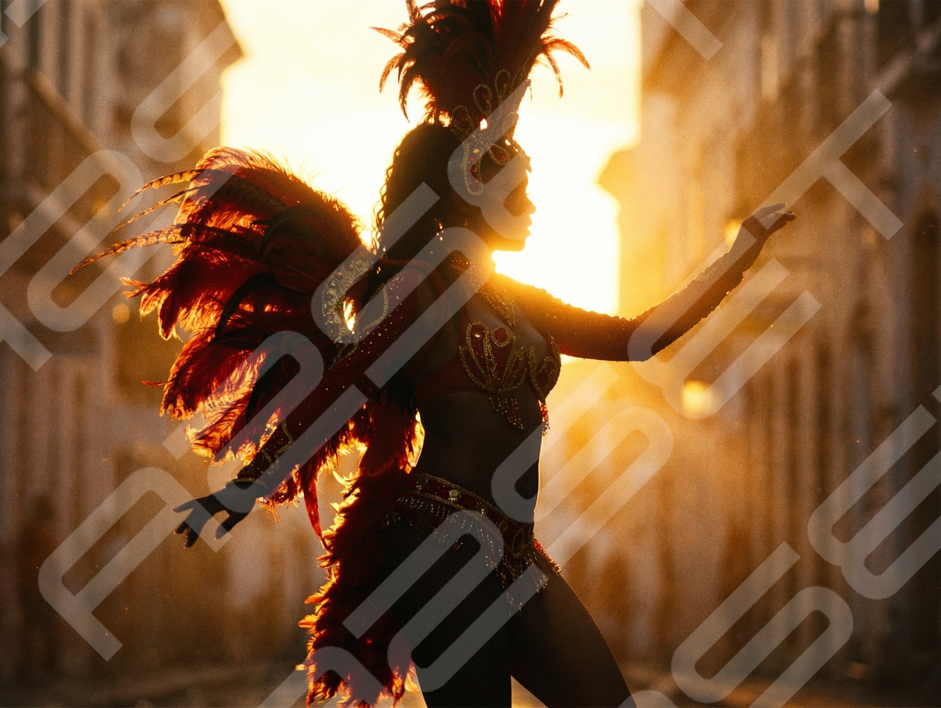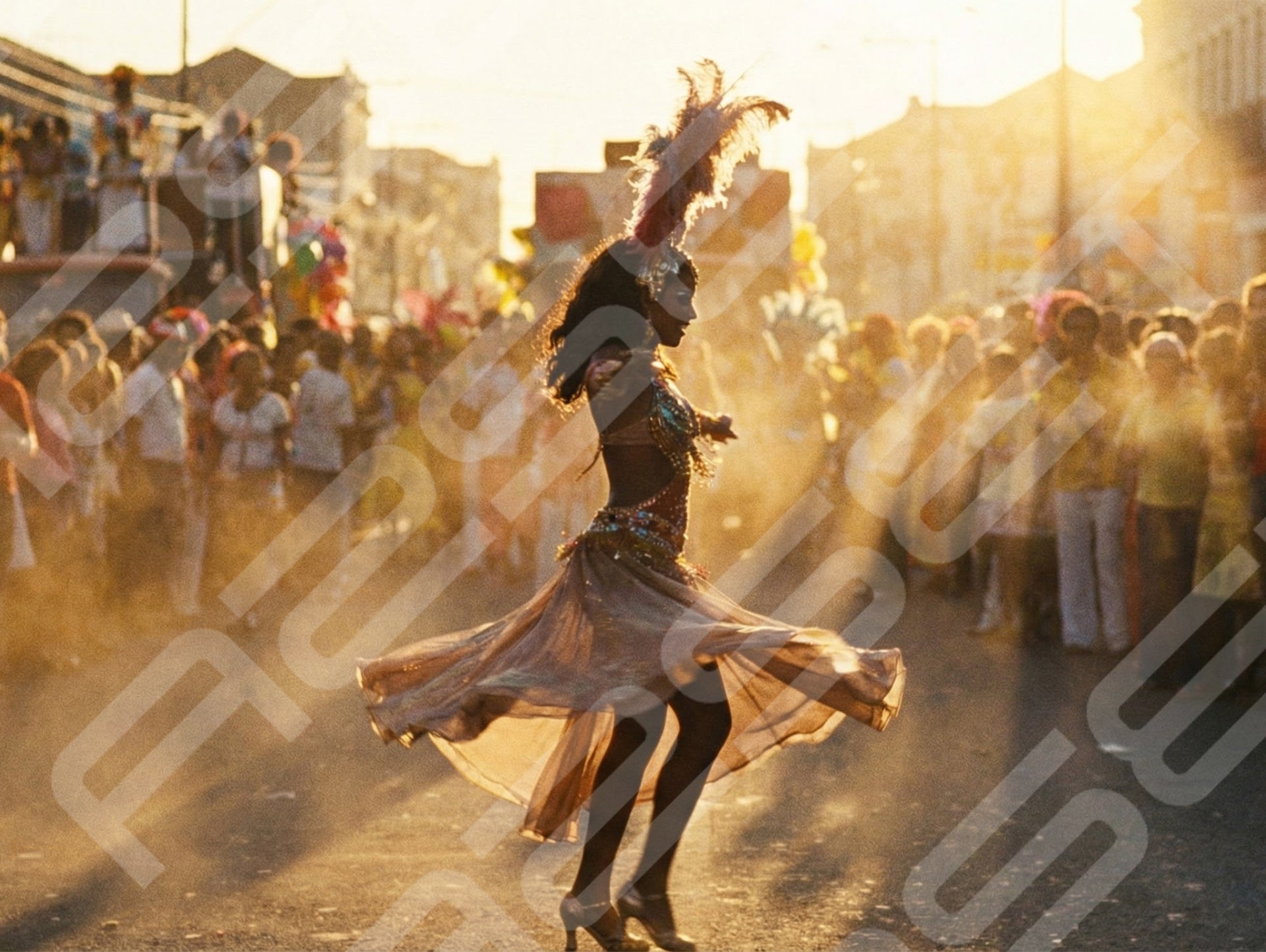 Golden Hour Carnival Dancer in City Street