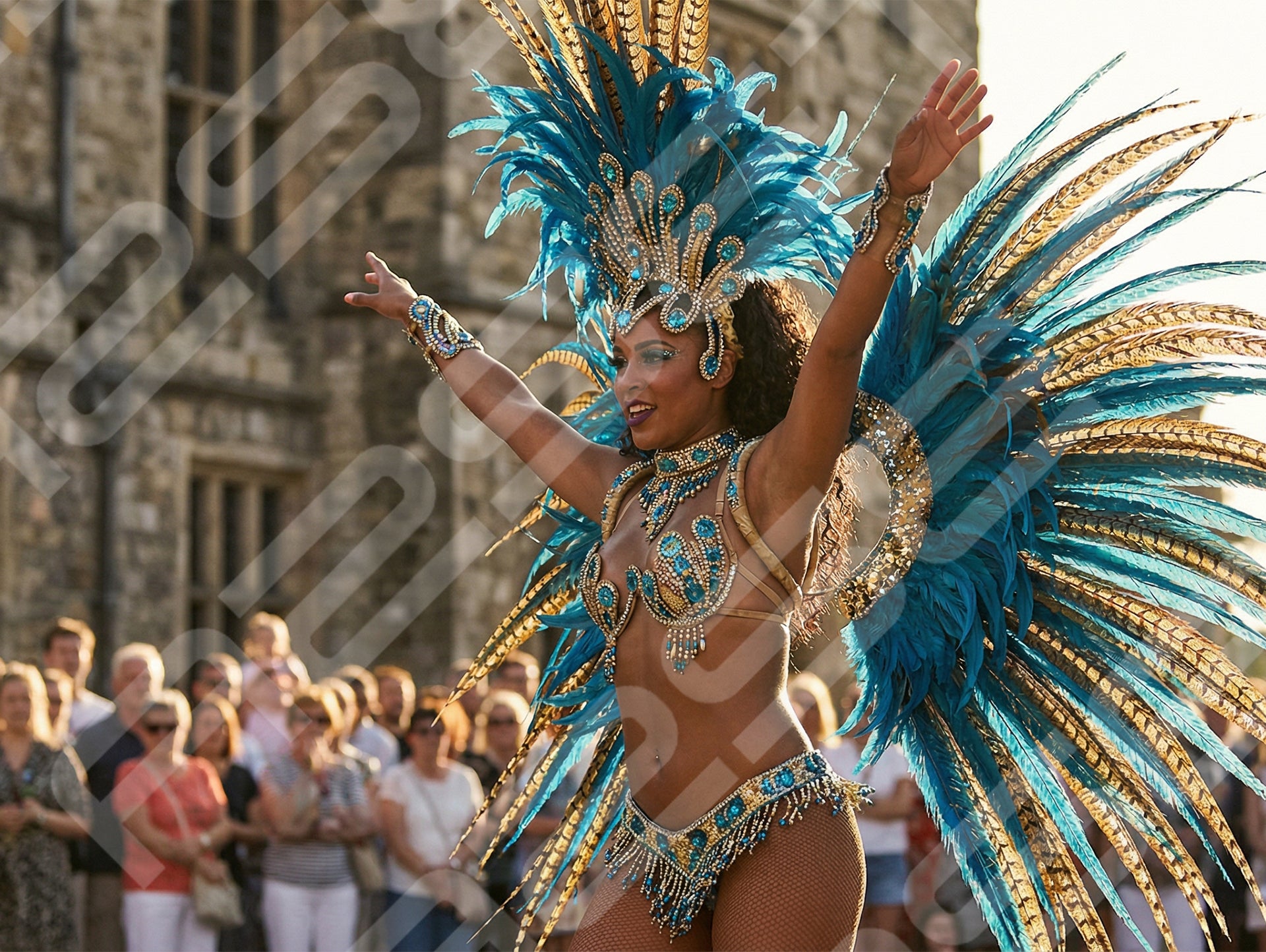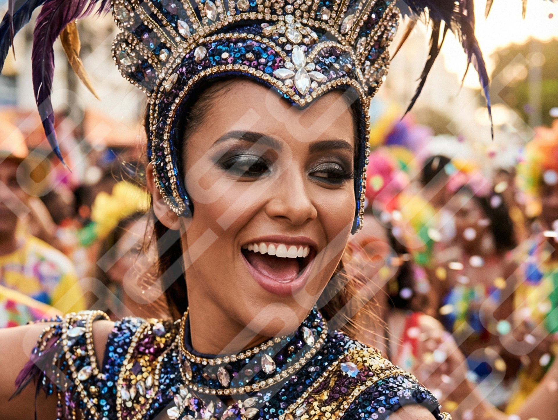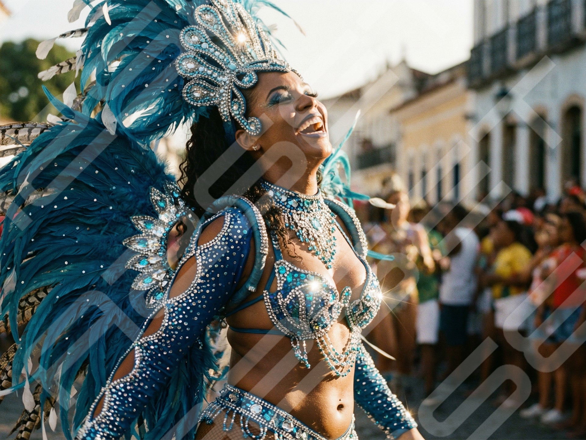 Carnival Queen in Blue Feather Headdress