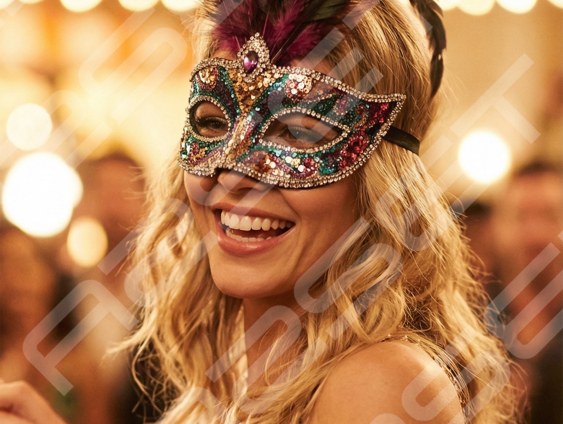 Blonde Carnival Woman with Feather Mask