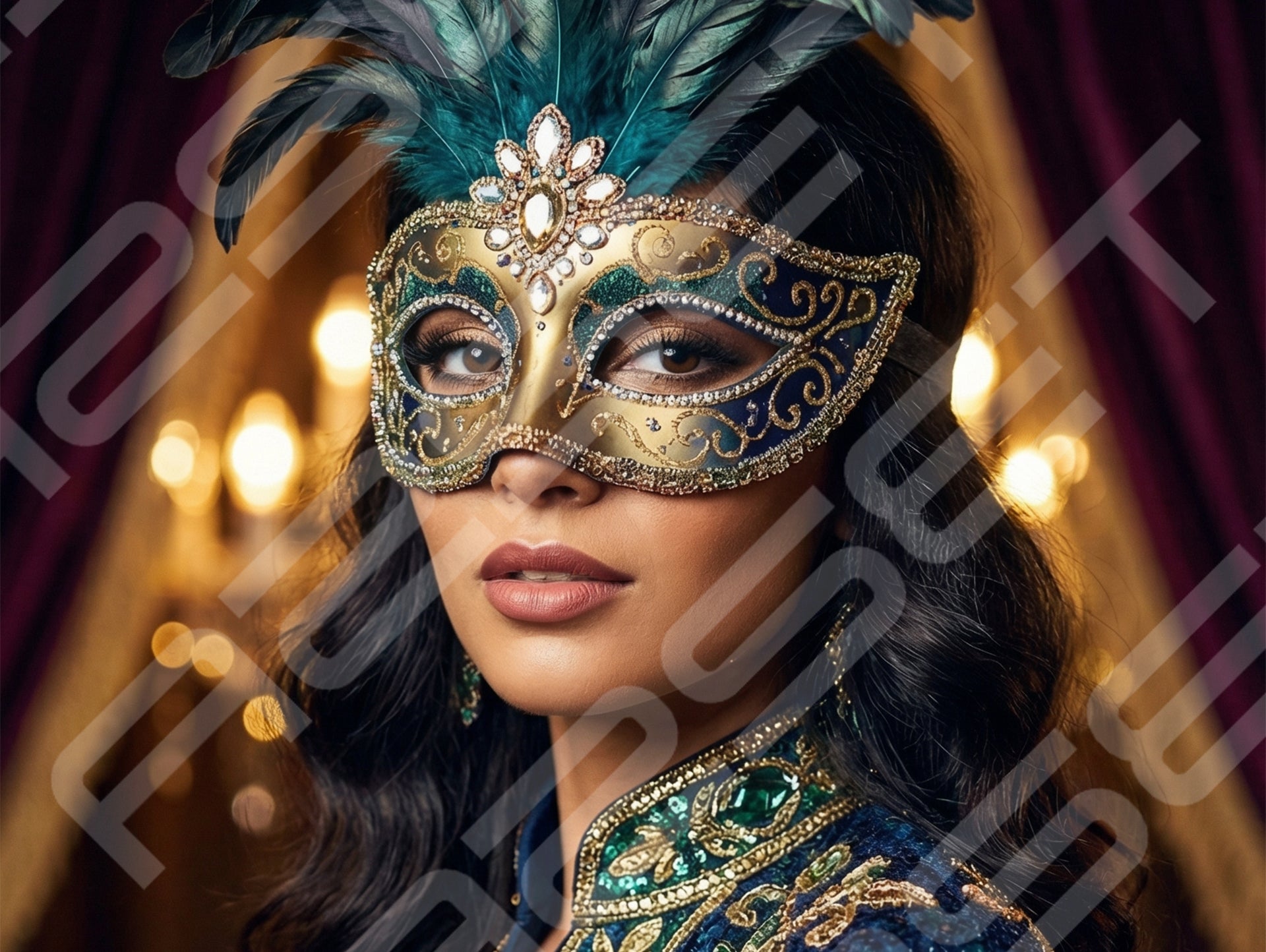 Luxury Masquerade Portrait in Blue and Gold