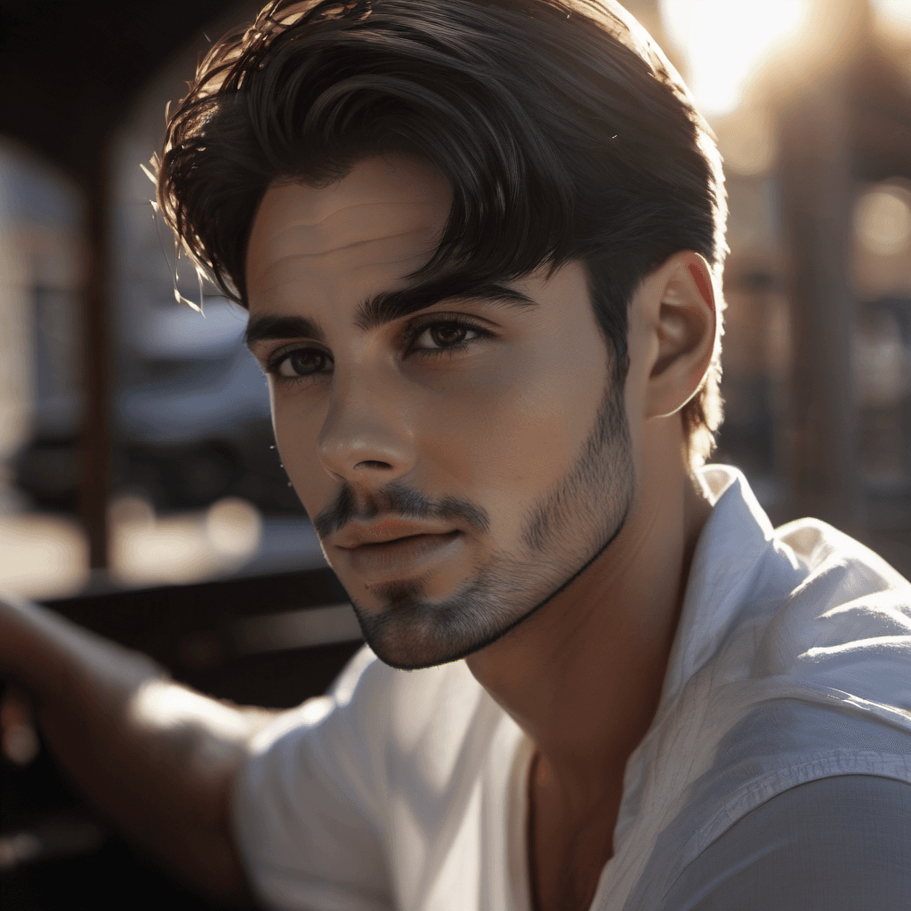 chr1s man, solo, 1 boy, raw photo, best quality, ultra high res, sunlight, (photorealistic:1.4), looking at viewer, upper body, photorealistic, cafe