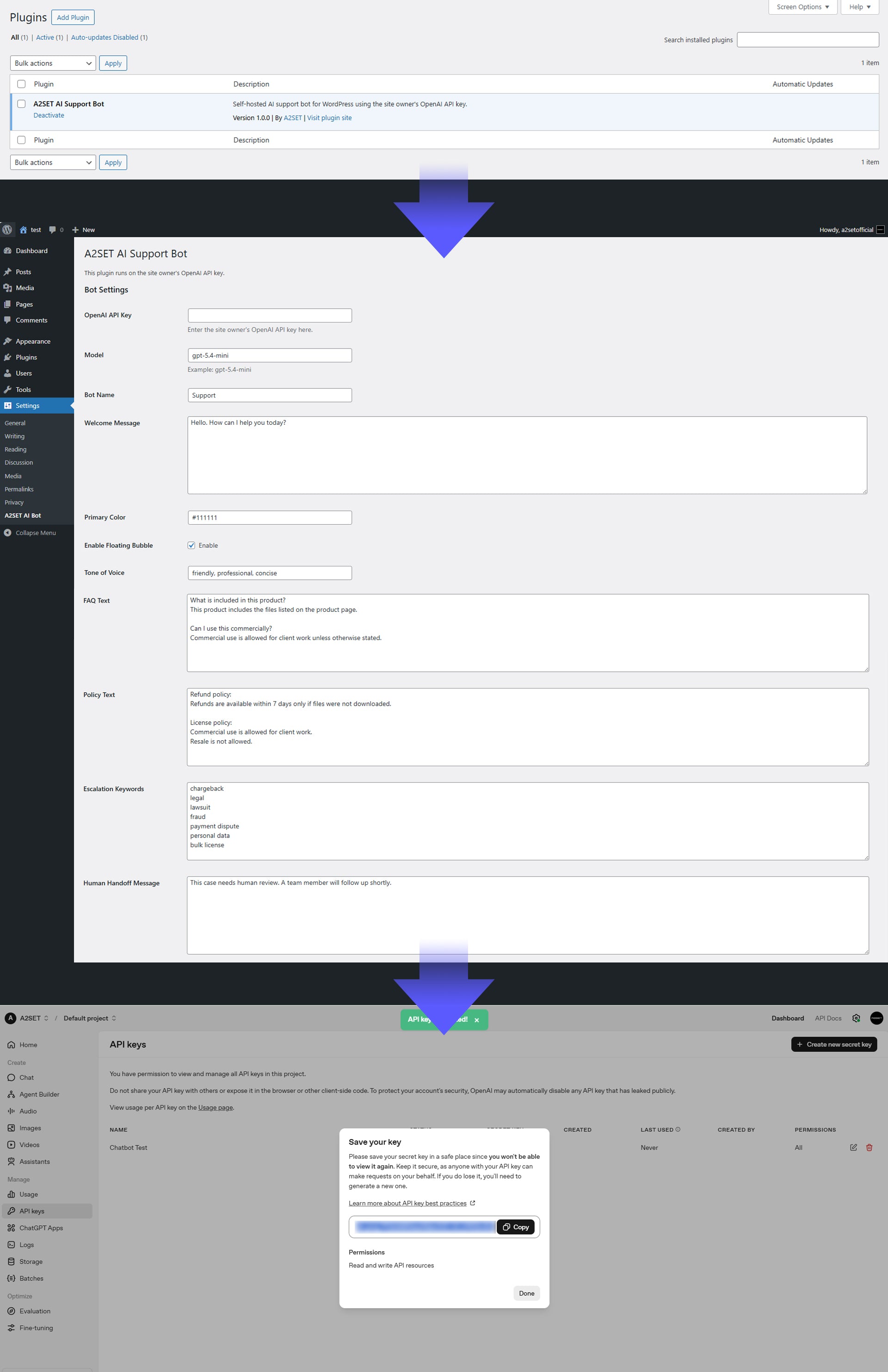 A2SET AI Support Bot for WordPress